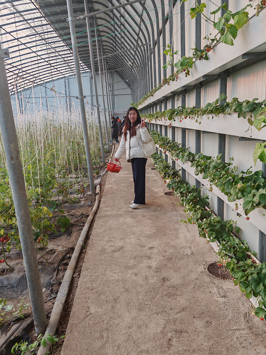 月牙岛的春日,处处是生机盎然的景致。抵达九如采摘园后,大家瞬间被满园的果香与绿意吸引——大棚内,五彩斑斓的应季果实挂满枝头,饱满的蓝莓、清甜的草莓、鲜嫩的小柿子,每一颗都透着自然的鲜甜。